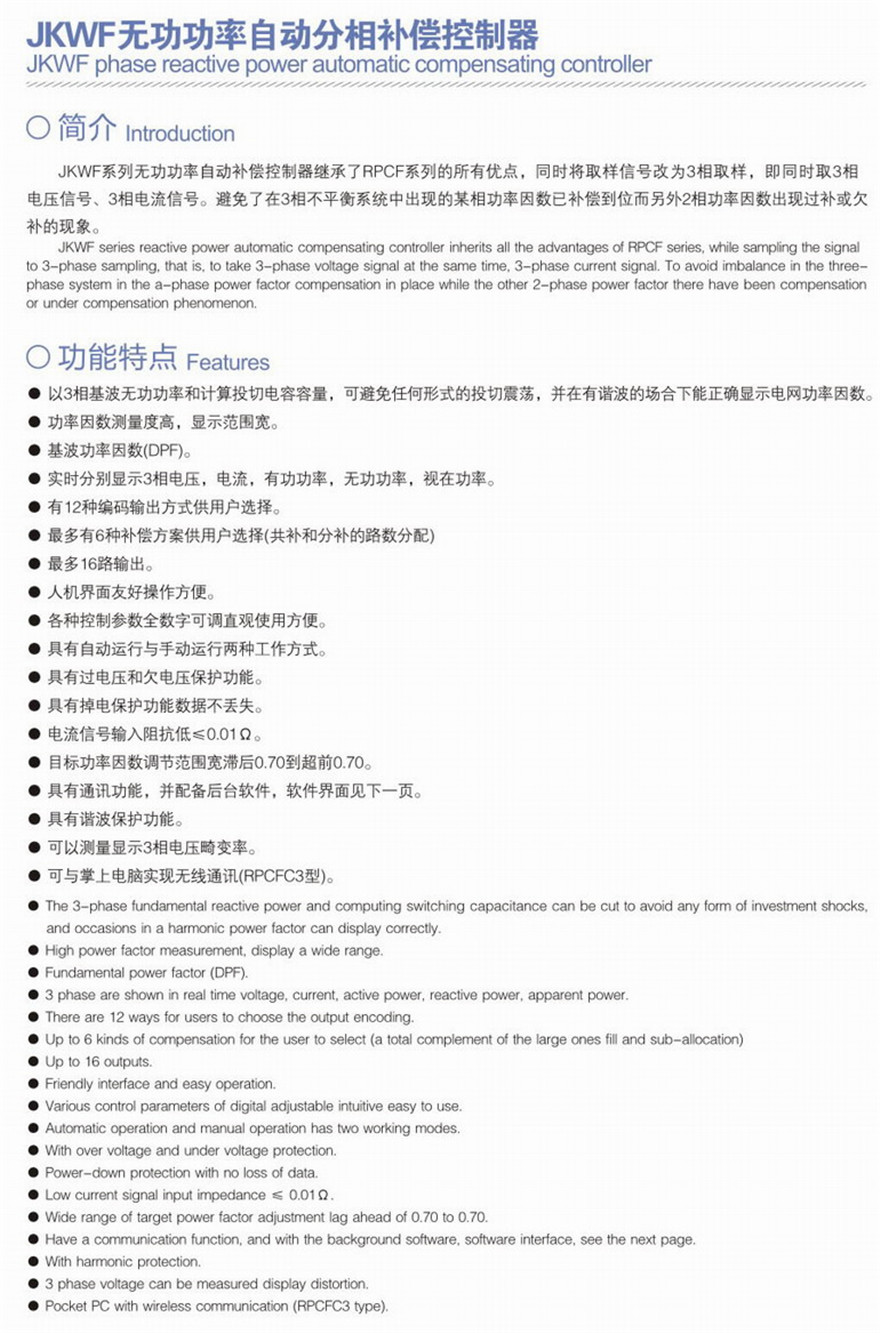 JKWF无功功率自动分相补偿控制器
