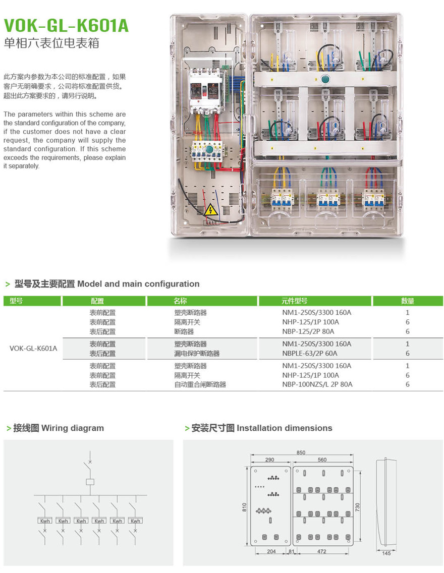 VOK-GL-K601A 单相六表位电表箱