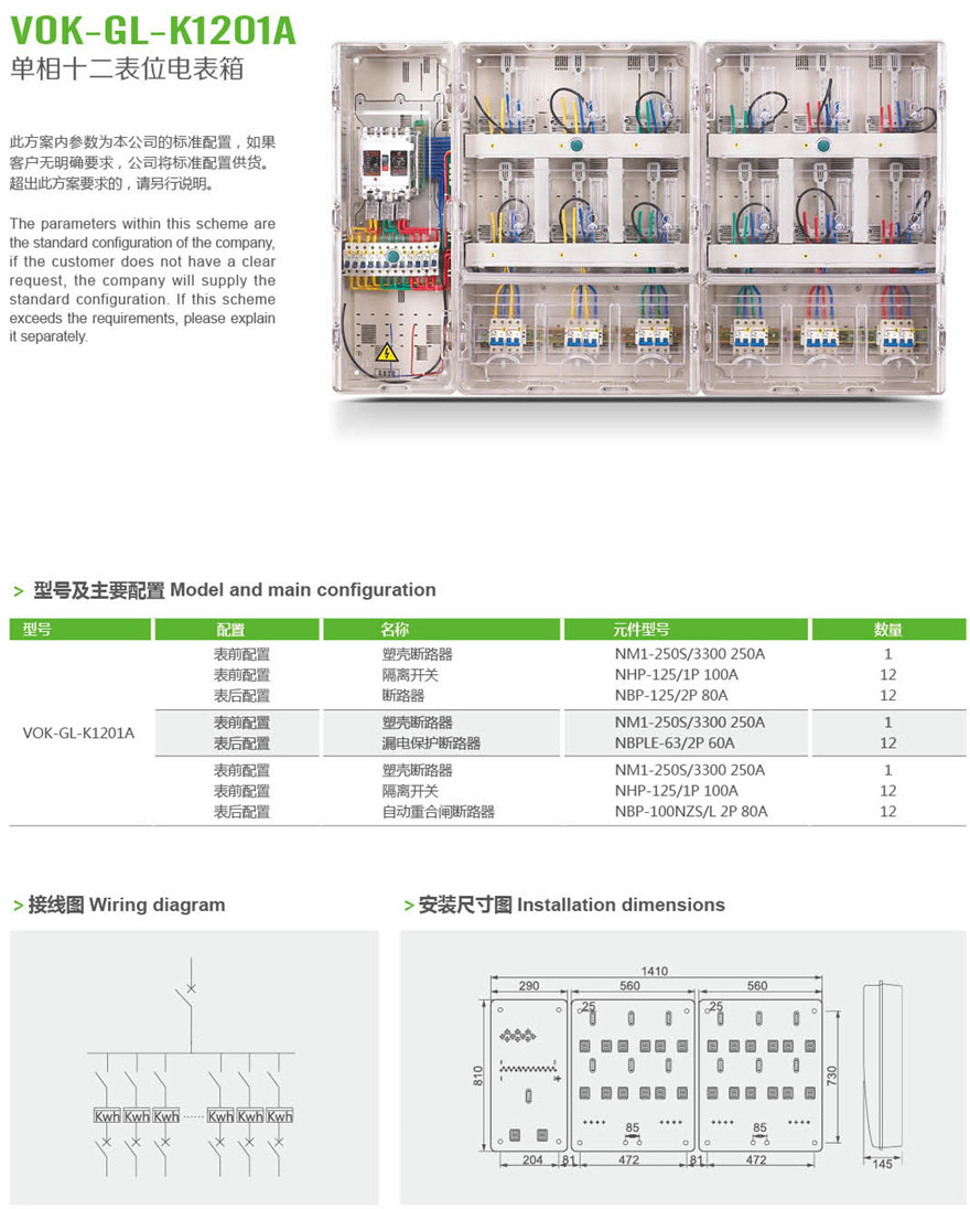 VOK-GL-K1201A 单相十二表位电表箱