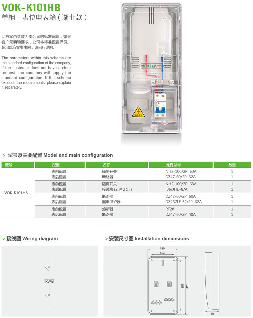 VOK-K101HB 单相一表位计量箱湖北款
