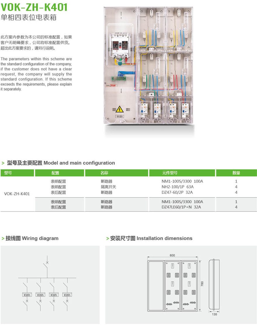 VOK-ZH-K401 单相四表位计量箱