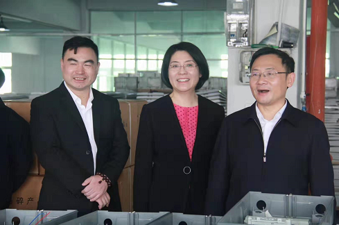 11月4日上午,由县委书记林虹与四川省旺苍县委书记唐文辉带队的仙居、旺苍党政考察团一行来到沃尔科电气,考察企业运行并慰问四川籍员工。沃尔科电气董事长黄剑敏陪同考察。